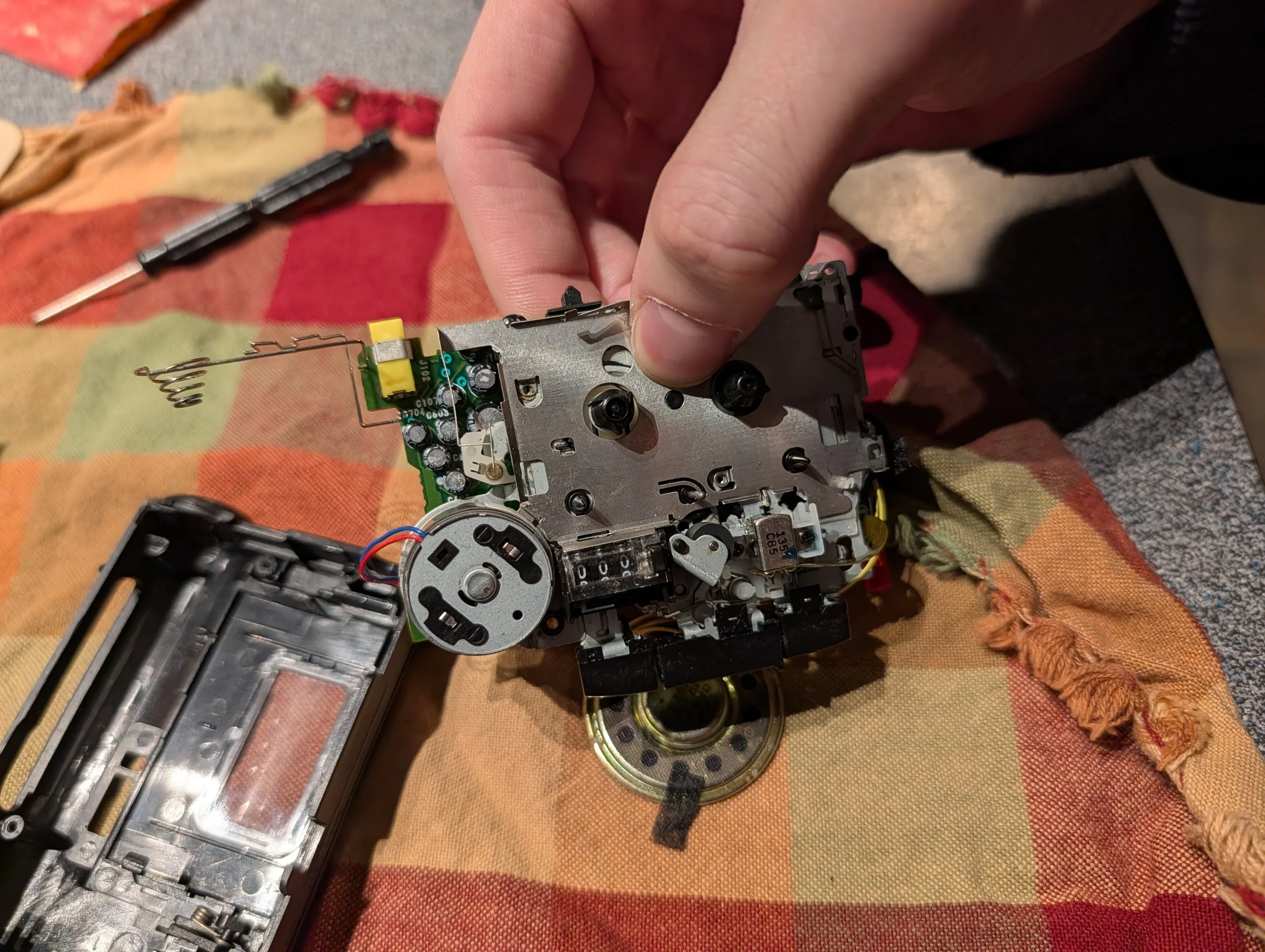 first course of action was to take off the case, this required a few small screws but a good thing about old tech is that they were designed to be assembled and taken apart by hand so its not that difficult.