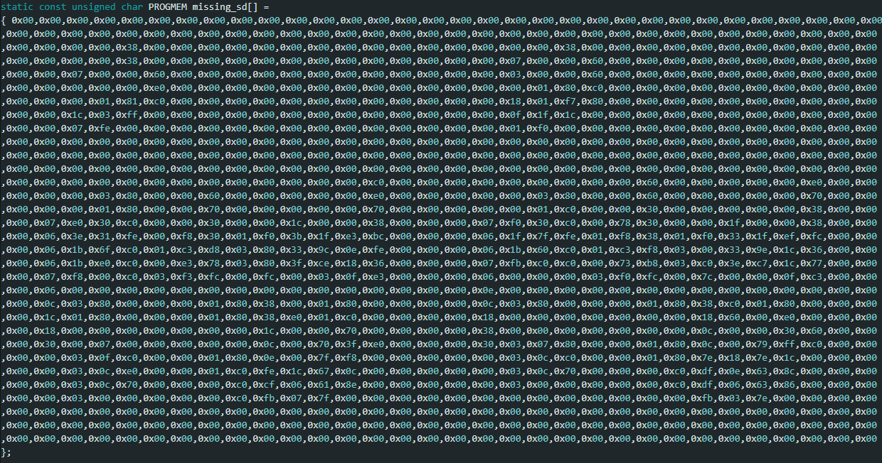 This worked, but was not a great solution due to the amount of storage it took up, and needing to reflash the microcontroller every time an image had to be changed.
