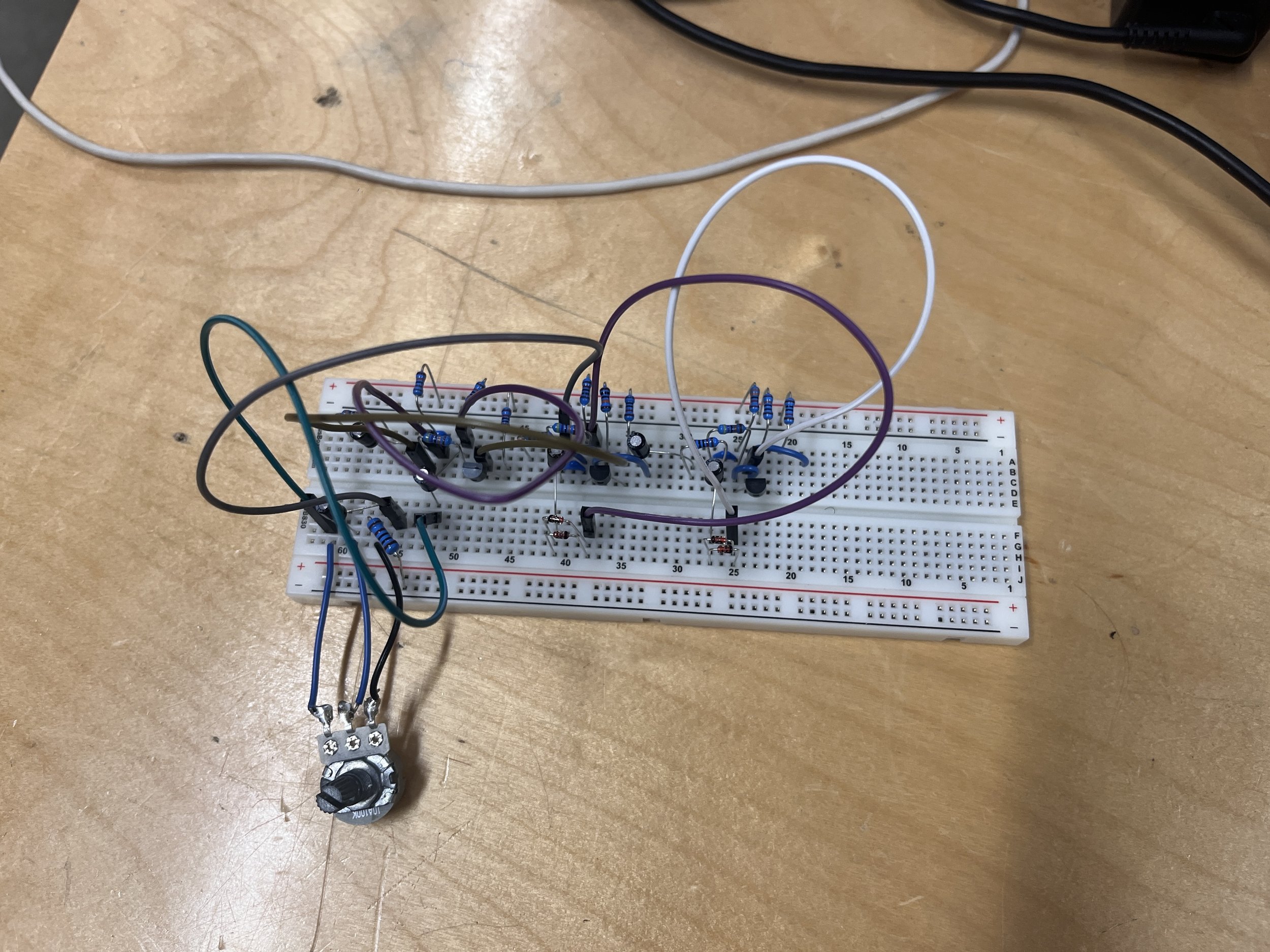 This is what his project looks like right now. He plans to move everything on to a protoboard and 3D print an enclosure for it so it looks like an actual pedal after getting the circuit to work.