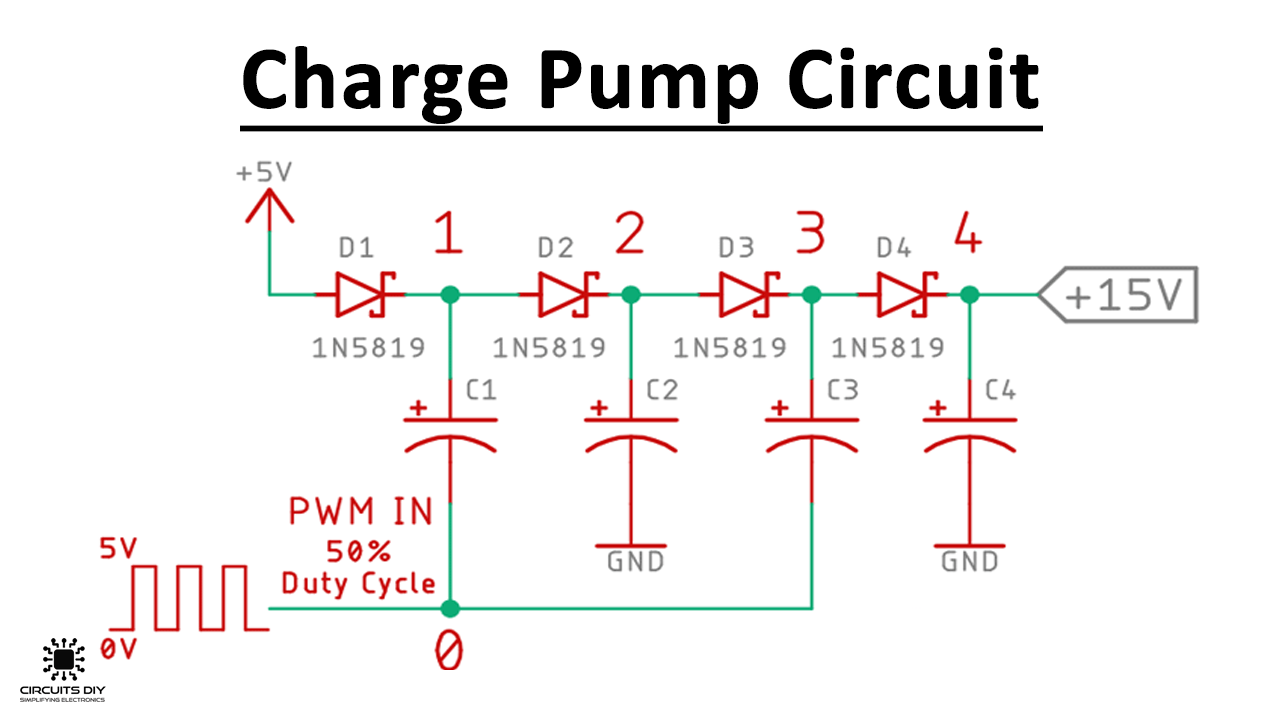 An example of a Charge Pump Circuit, by Circuits DIY.