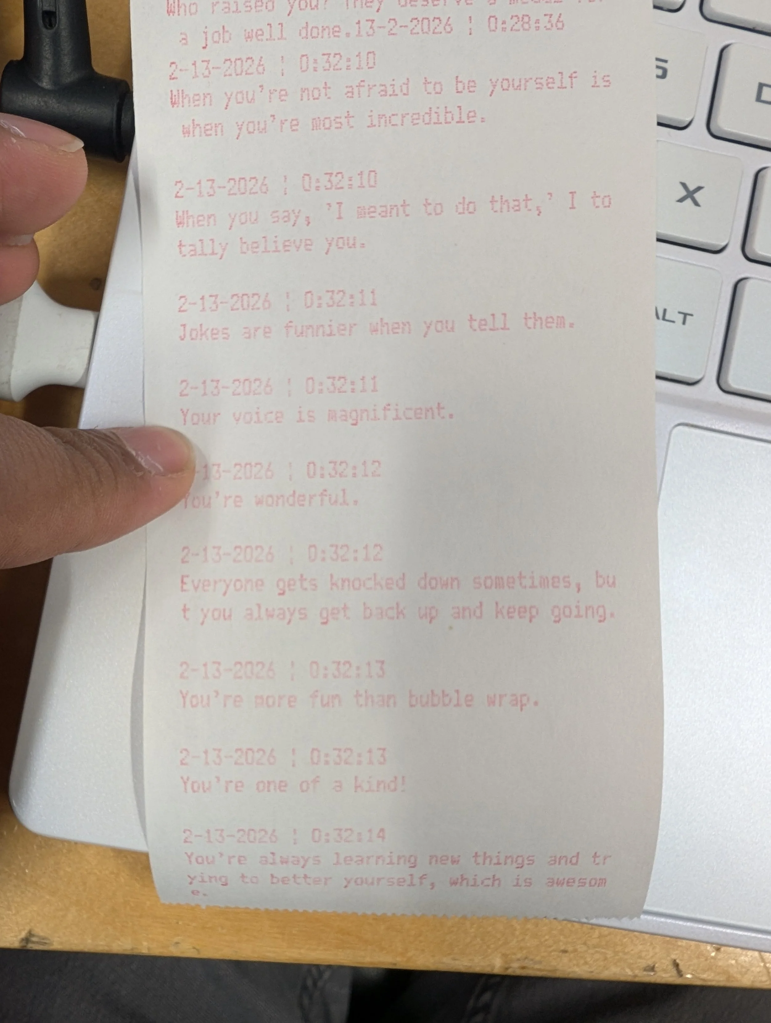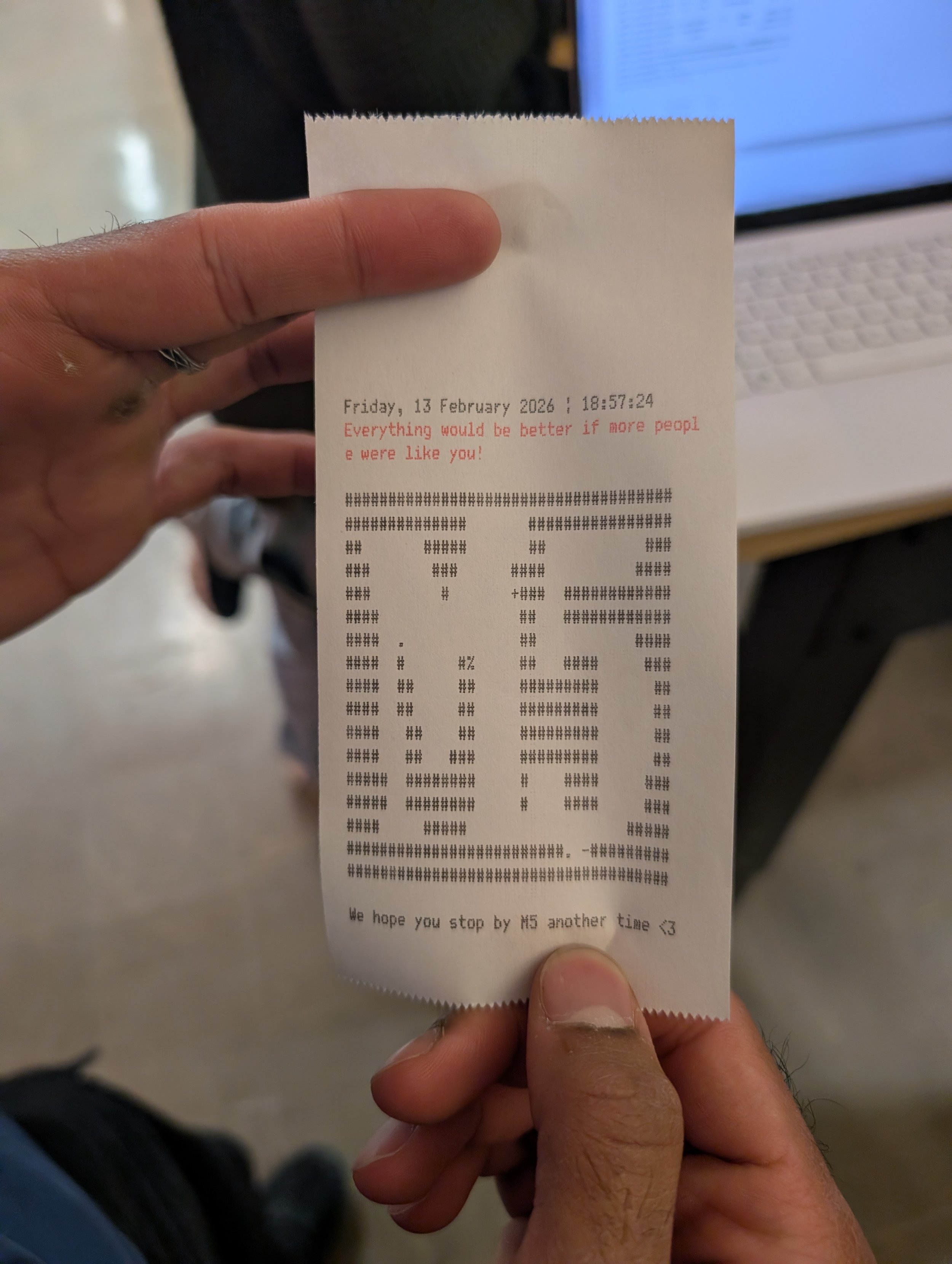 An example of the receipts printed during Saturday Makerday