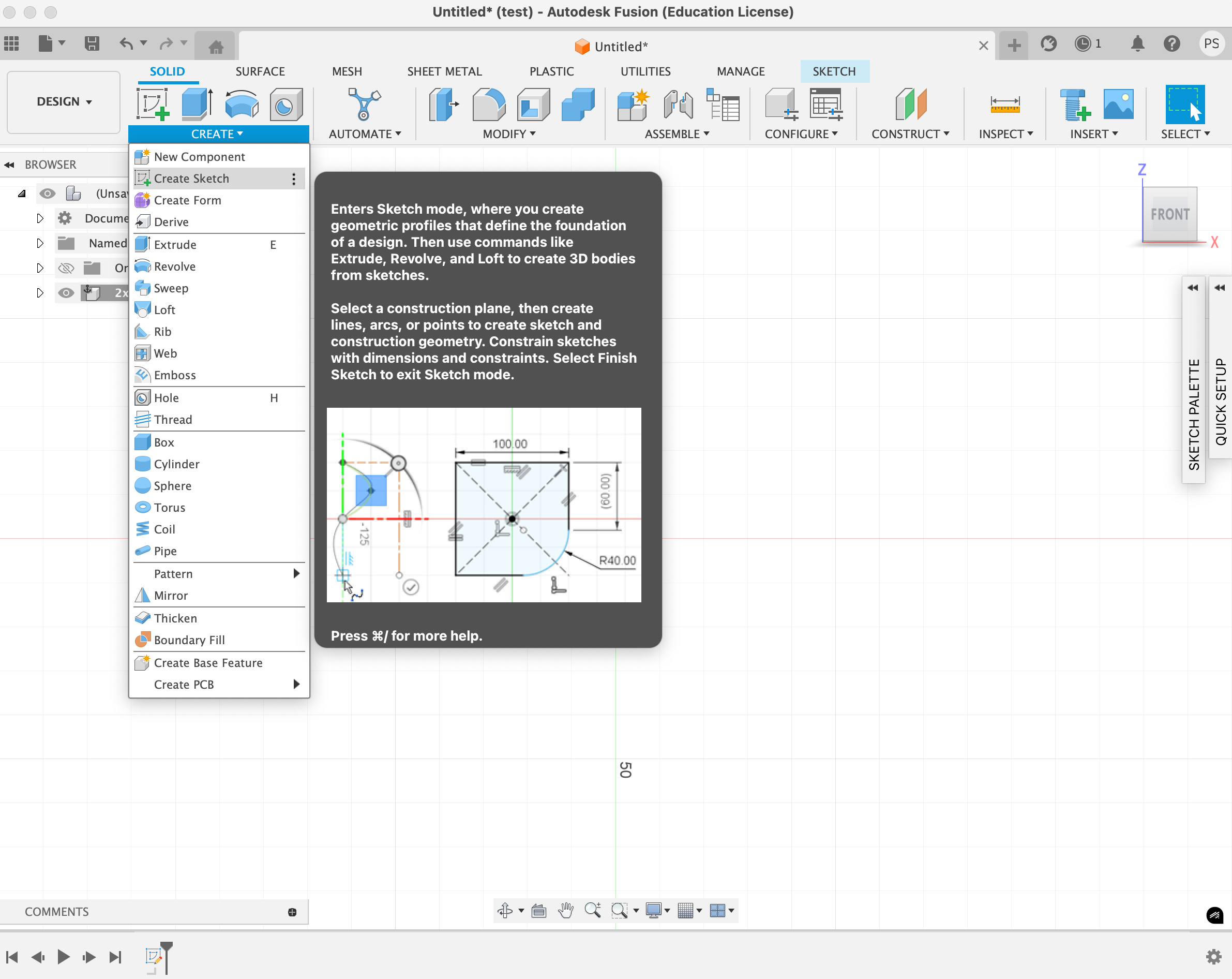 First we create a new sketch. You should navigate to Solid —> Create —> New Component