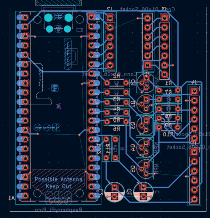 Here’s a schematic for a motor controller PCB that uses a Pi Pico for the logic and has some homemade vias: