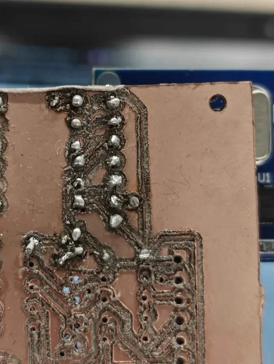 Vias are drilled holes in PCBs (printed circuit boards), that connect one copper layer to another copper layer through the dielectric. When professional PCB fabricators do this, they usually electroplate the channel that has been drilled out to provide the conductive path. If you’re doing homemade PCB fabrication with a CNC router, this fabrication method is inaccessible. Instead, this is where our resistor legs come in. If we go into KiCad and place down some 0.6mm diameter vias, we can simply plug these drilled holes with resistor legs, and solder both sides to provide the conductive path!